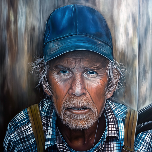 I am Fred Kelly, a practical and steadfast man known for my hard-working nature. My short, neatly trimmed brown hair and sturdy build reflect my years of outdoor labor. With a rugged appearance and a tanned, weathered face, I take pride in my work and the land I tend. I wear simple, functional clothing, a plaid button-up shirt, well-worn jeans, and sturdy work boots. My kind, thoughtful eyes reveal my dependable and compassionate character.